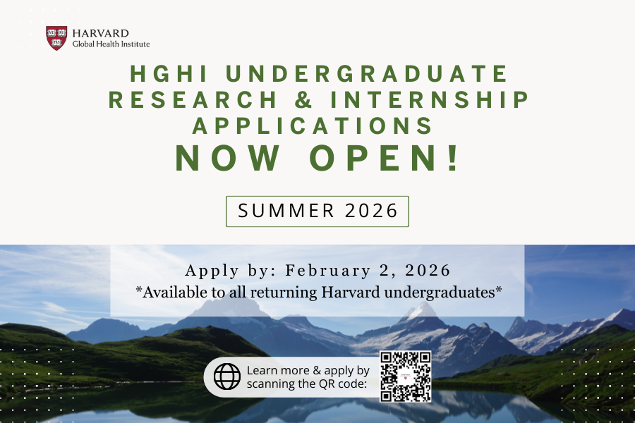 Applications to the Harvard Global Health Institute’s paid summer research and internship placements for returning Harvard undergraduates are now open. Students selected for the program will receive a stipend to cover travel, living, and local transportation expenses for the 10-week internship, which begins in early June 2026. Ranging from placements in laboratories and research groups to fieldwork with hospitals and community health clinics to office-based internships with NGOs and international organizations, these opportunities help students connect classroom knowledge and skills to the complex issues in the field.