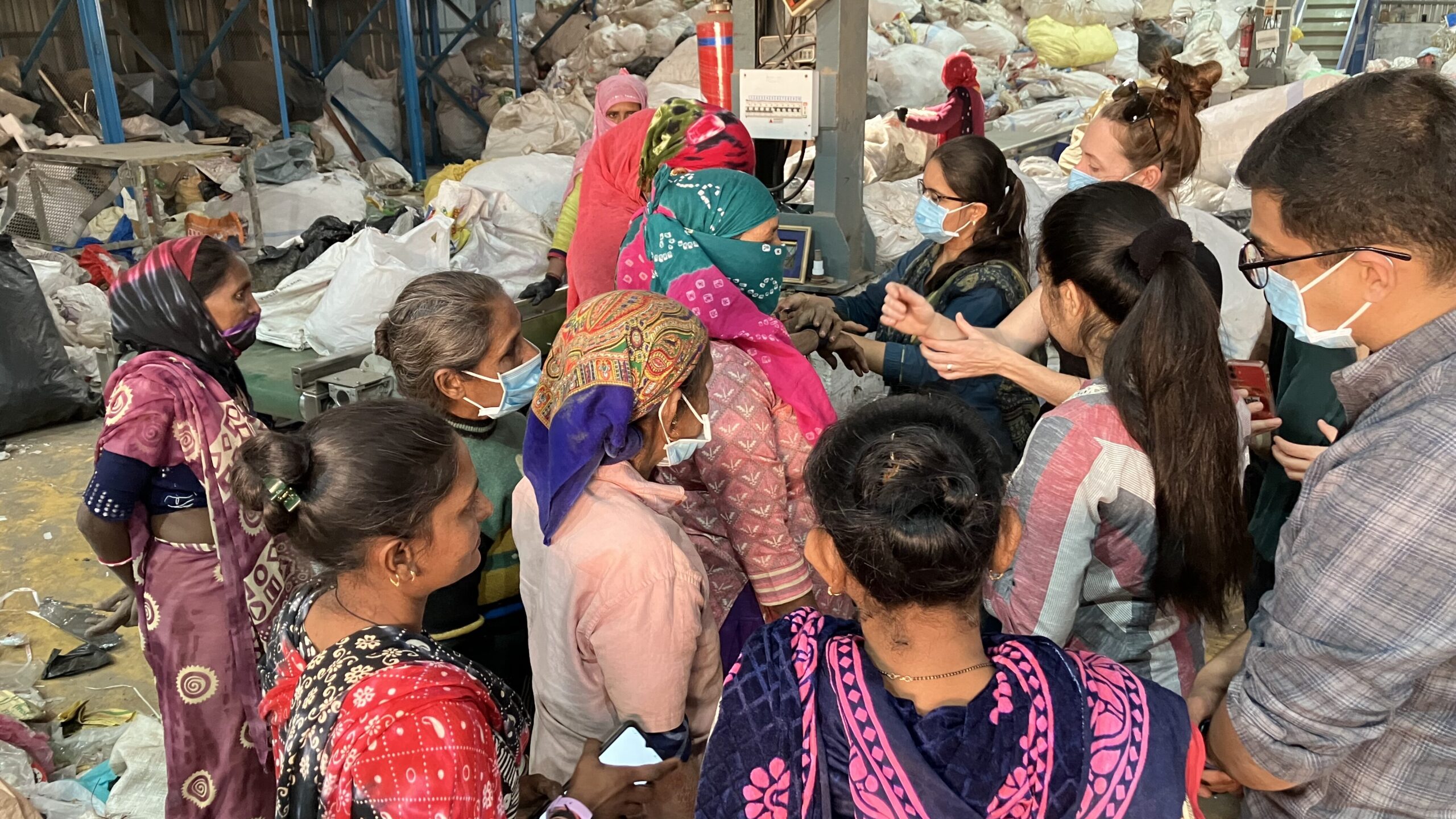 The Harvard research team tours a waste recycling facility in Ahmedabad, India, to study the thermal comfort challenges faced by women workers. (Jan–Feb 2024 | Credit: BalsariLab)